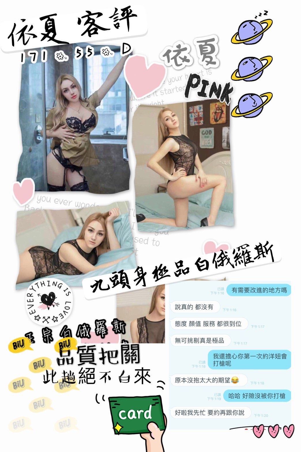 可配合 :按摩,69,共浴,可親嘴,無套吹,口爆,品鮑,輕功,奶推,快餐,2S
