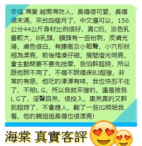 可配合 :69,共浴,可親嘴,無套吹,舔蛋